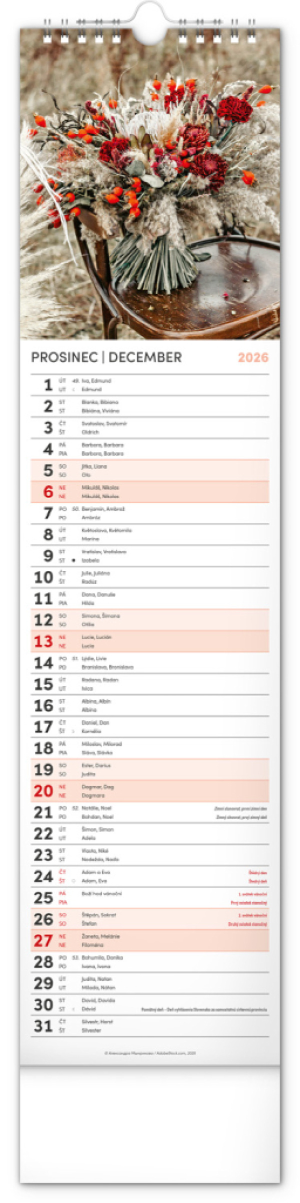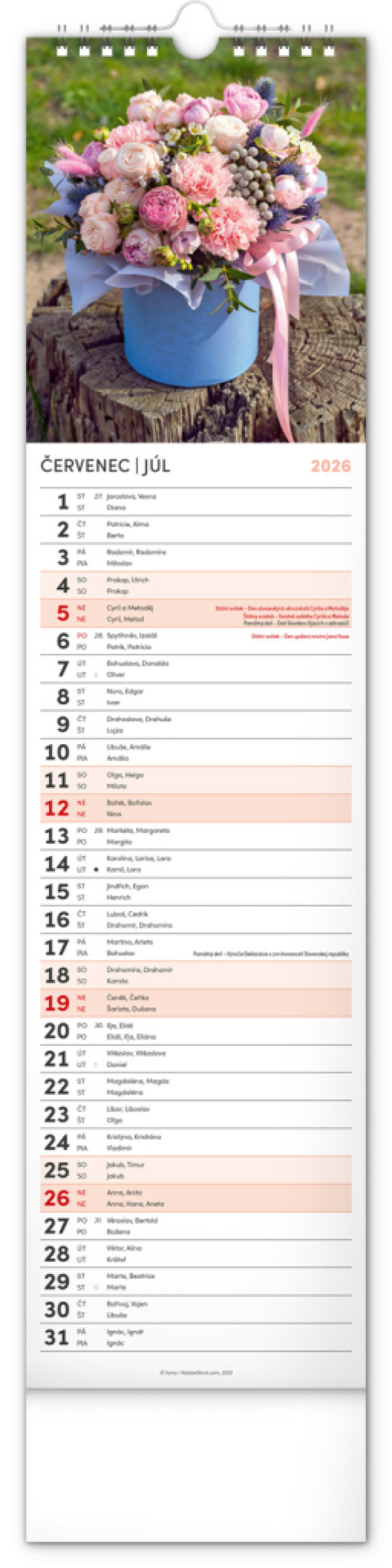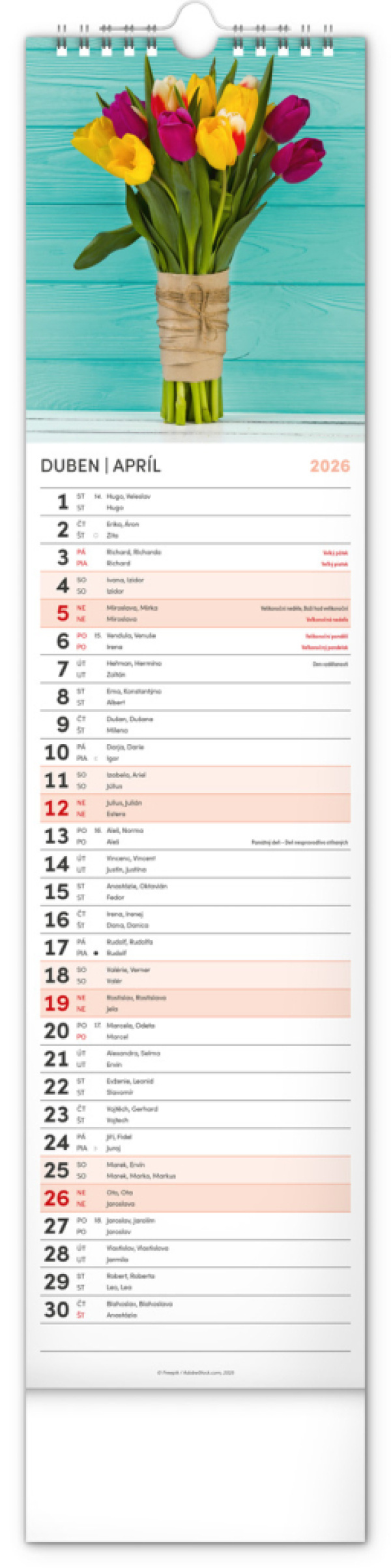 NOTIQUE Nástenný kalendár Květiny – Kvety CZ/SK 2026, 12 x 48 cm