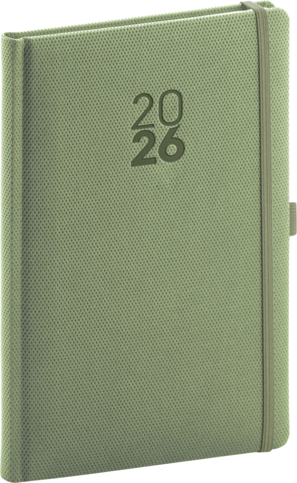 NOTIQUE Týždenný diár Diamante 2026, olivový, 15 x 21 cm