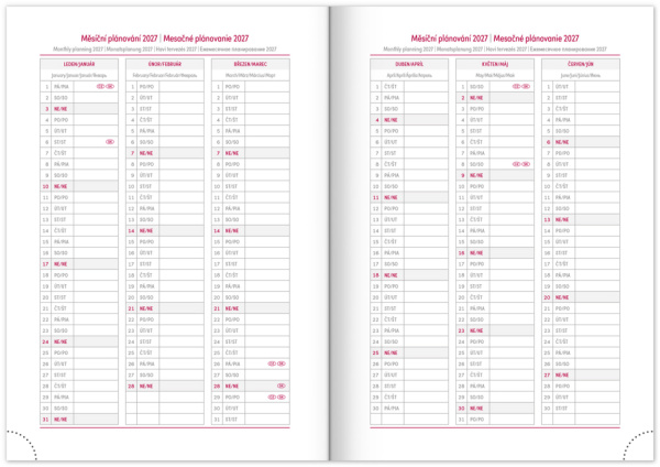 • kalendárium od decembra 2025 • mesačný plánovací kalendár 2026 • mesačný plánovací kalendár 2027 • ročný plánovací kalendár 2026–2027 • pracovný plánovací kalendár • sviatky Českej a Slovenskej republiky a