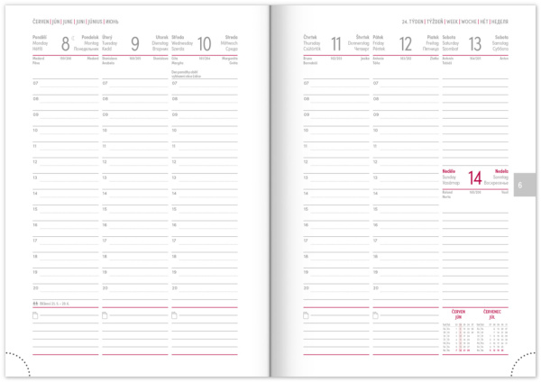 • mapa Českej a Slovenskej republiky < • miesto pre osobné údaje • textilná záložka • perforované rožky • priestor na poznámky