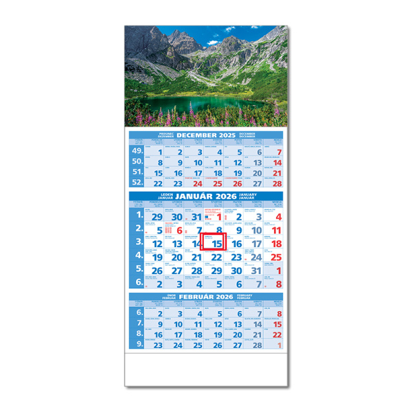 Plánovací kalendár ŠTANDARD 3M modrý 2026 Obrázok A
