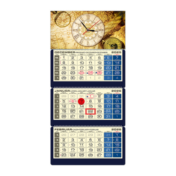 Plánovací kalendár LUXUS 3M modrý 2026 Hodiny QN