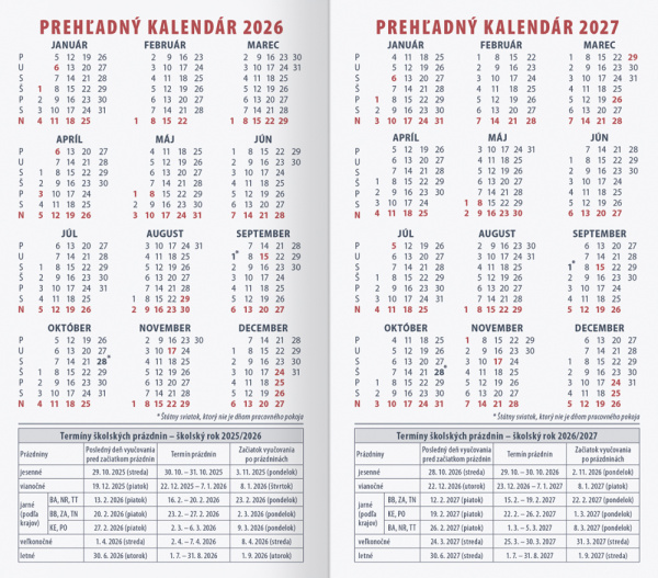 kalendár, informácie o školských prázdninách. Nájdete v ňom priestor pre písanie poznámok a pripomienok, adresár či informácie o štátnych sviatkoch susediacich krajín EÚ. Možnosť dotlače loga na obale od 30 ks. VO balenie: 20 ks