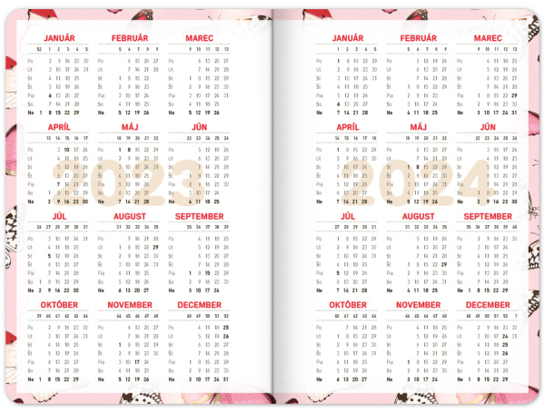 Školský diár Motýliky (september 2023 – december 2024), 9,8 × 14,5 cm