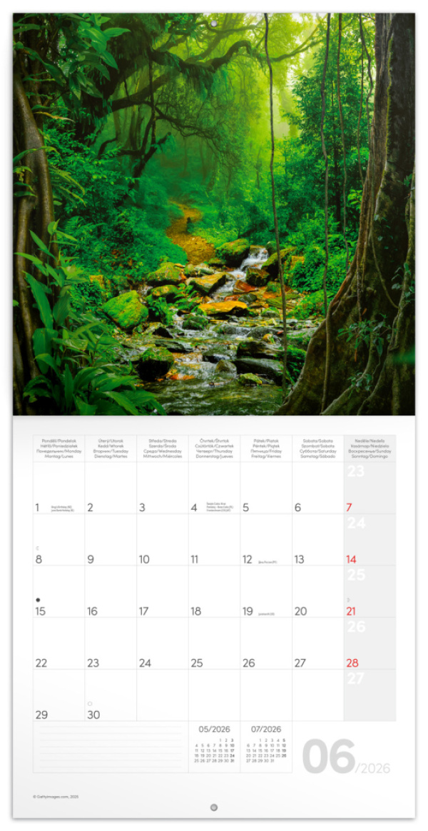 NOTIQUE Poznámkový kalendár Dažďové pralesy 2026, 30 x 30 cm