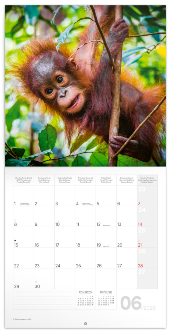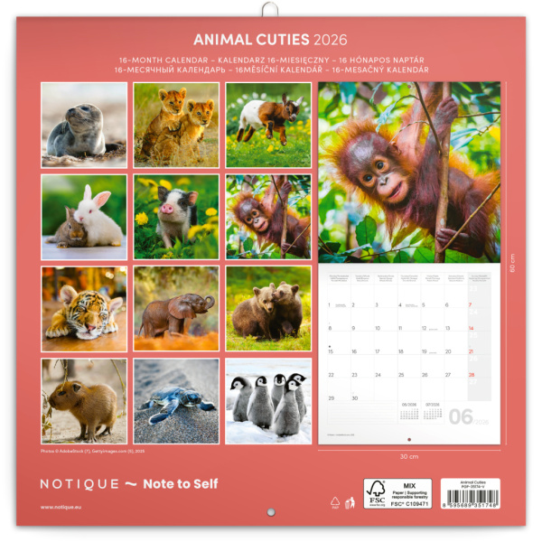 NOTIQUE Poznámkový kalendár Mláďatá 2026, 30 x 30 cm
