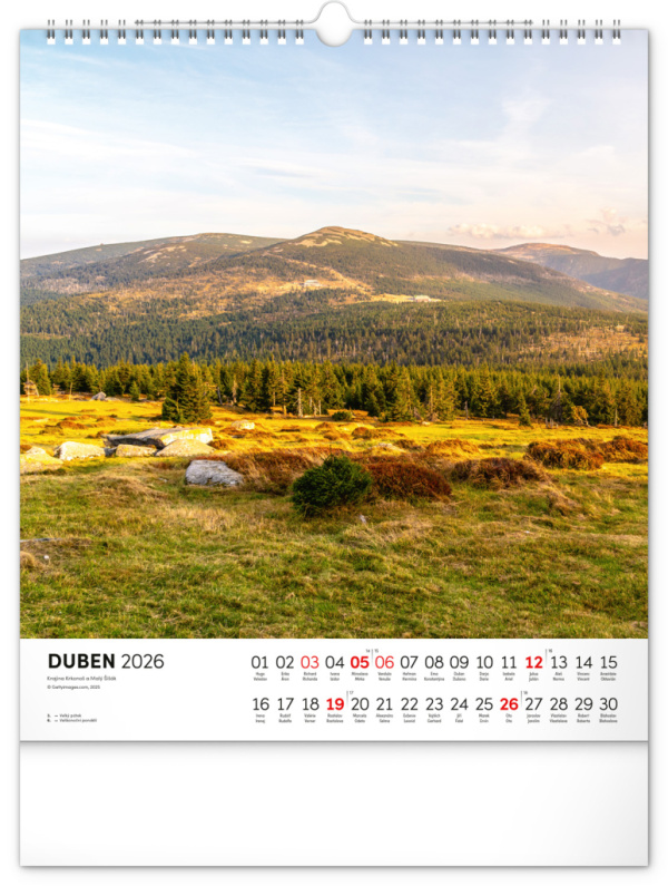 NOTIQUE Nástenný kalendár Krkonoše CZ 2026, 30 x 34 cm