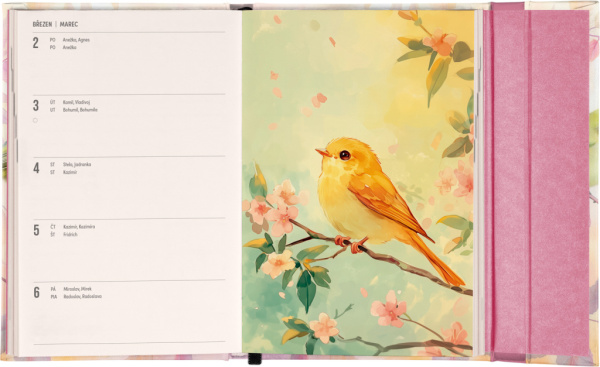NOTIQUE Týždenný magnetický diár Vtáčiky 2026, 11 x 16 cm