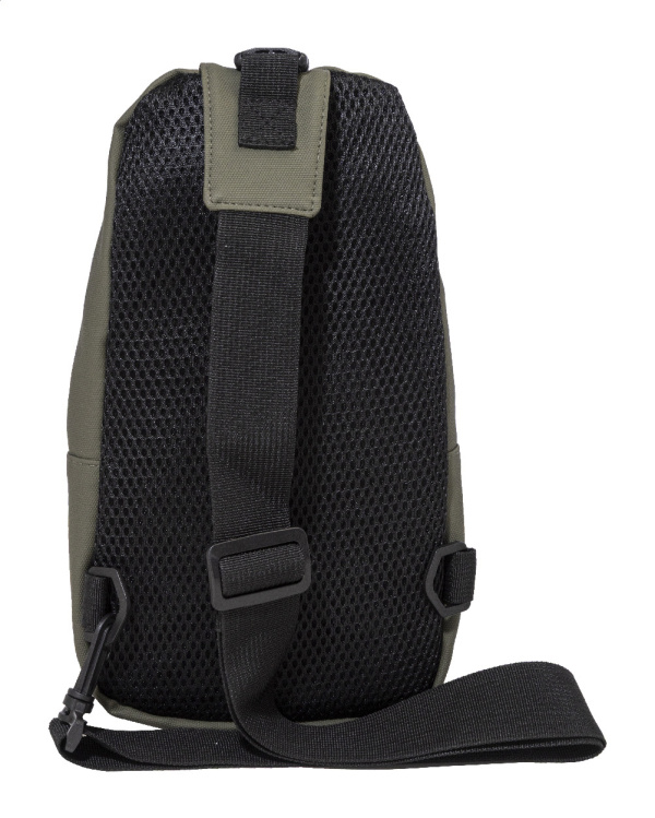 Vodeodolná RPET crossbody taška na zavesenie cez rameno s vreckami na zips, zapínaním na pracku a polstrovaným chrbtom. S nastaviteľným ramenným popruhom vybaveným polohami na ľavej a pravej strane. Polyester RPET 600D potiahnutý PU, s výraznou etiketou RPET.