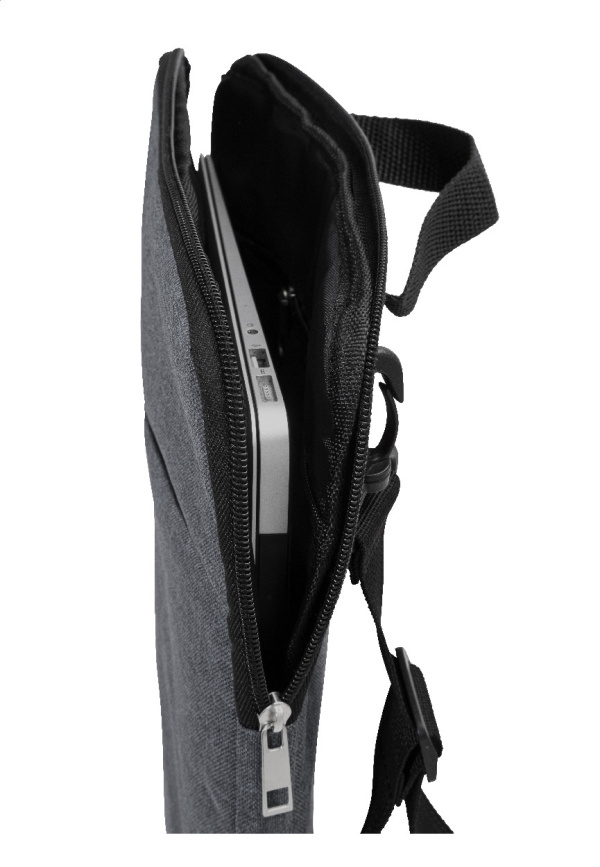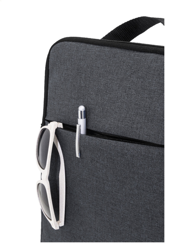 Polstrovaná taška cez rameno z polyesteru 600D RPET na dokumenty alebo notebook s priehradkou na zips a predným vreckom na zips. Vhodná pre notebooky do veľkosti 15". S nastaviteľným ramenným popruhom vybaveným vertikálnou a horizontálnou polohou. S výrazným štítkom RPET.