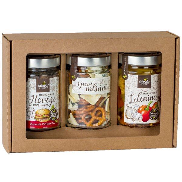 Darčekový balíček Hovädzie trhané mäso + Nakladaná zelenina + Syrové maškrtenie
