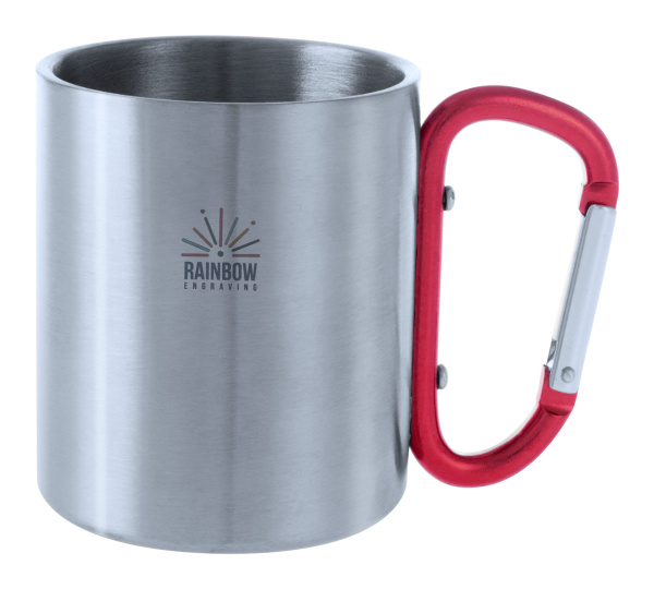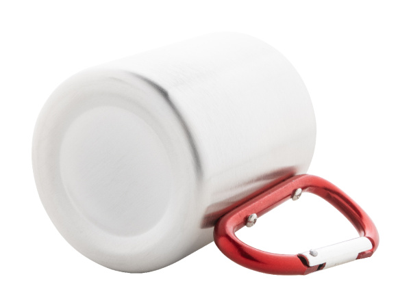 Dvojplášťový nerezový hrnček, rukoväť karabína. 220 ml.