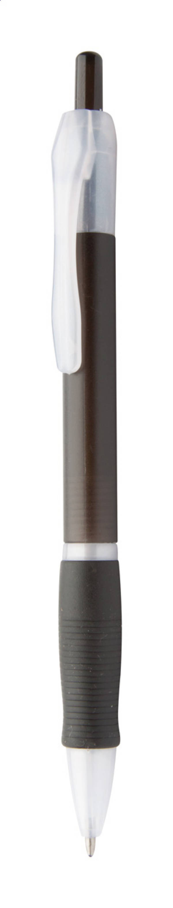 Plastové guľôčkové pero s pogumovaným úchopom a s modrou náplňou.