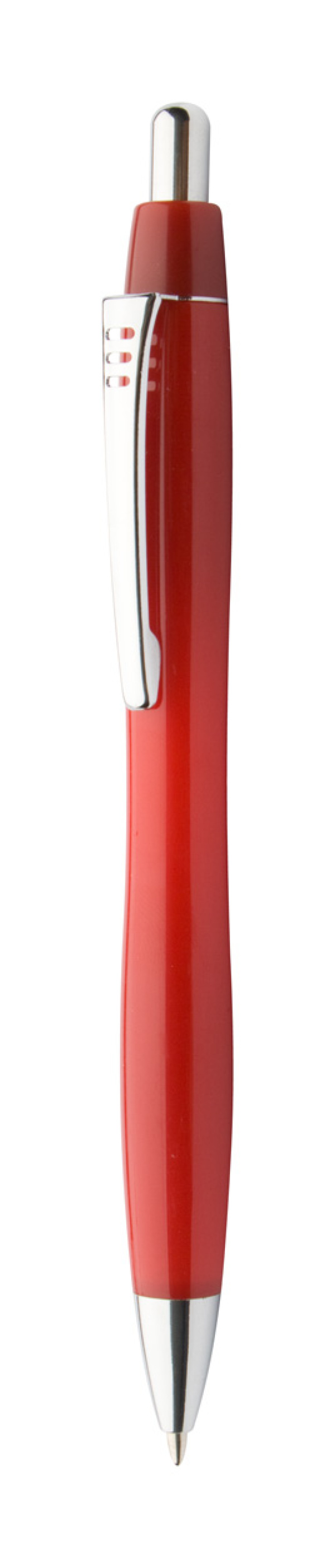 Plastové guľôčkové pero s pogumovaným úchopom a s modrou náplňou.