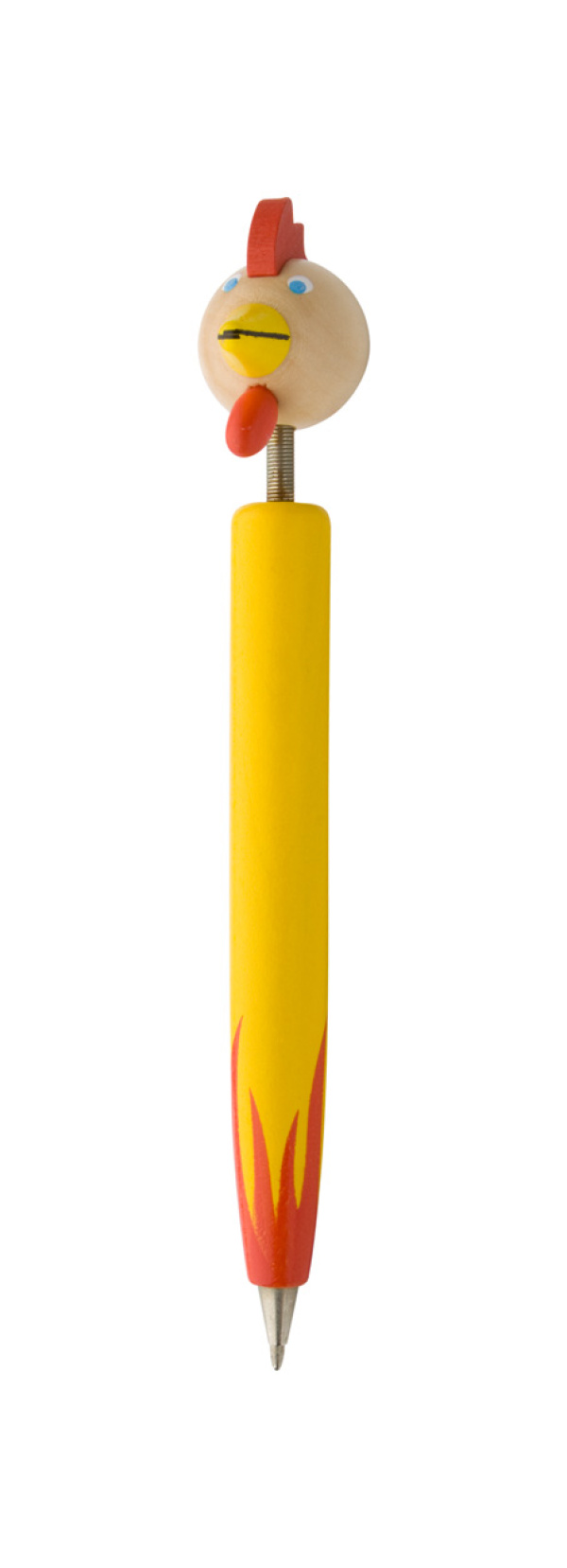 Drevené guľôčkové pero s farebnou hlavičkou zvieratka, s modrou náplňou.