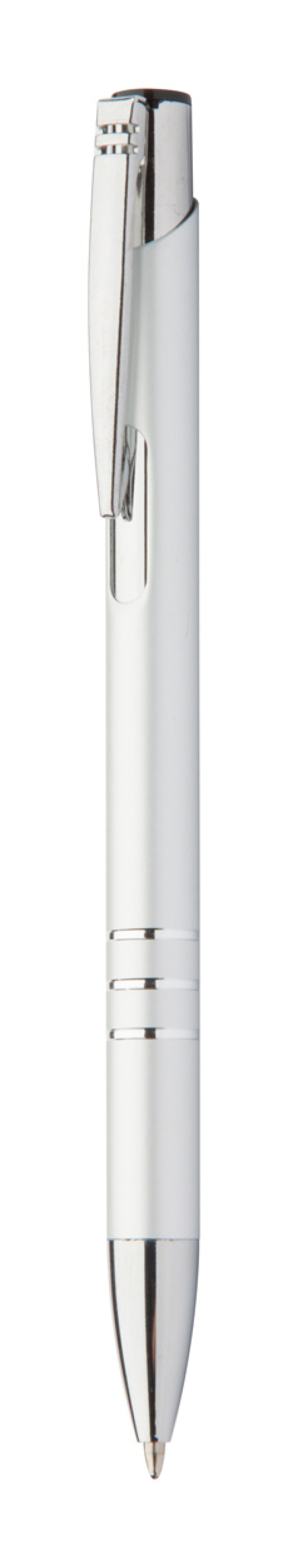 Hliníkové guľôčkové pero s modrou náplňou.