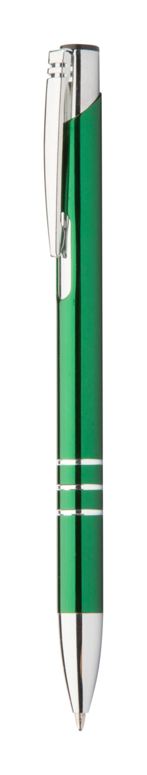 Hliníkové guľôčkové pero s čiernou náplňou.
