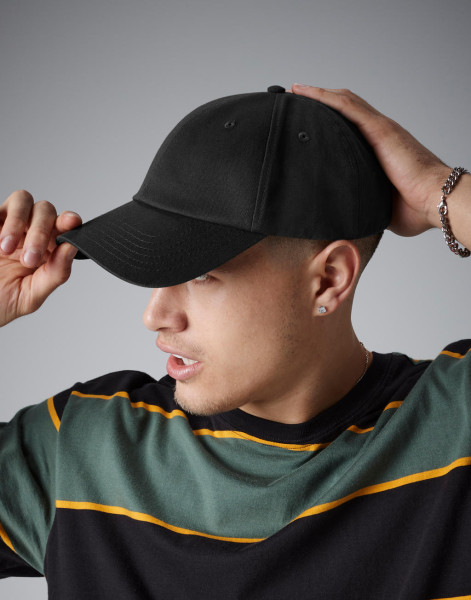 ·100% bavlna (keper) ·strdný profil, konštrukcia 6 panelová ·predzahnutý šilt ·štruktúrované predné panely ·prešité vetracie otvory ·nastaviteľná veľkosť s popruhom z odpovedajúceho materiálu a prackou ·TearAway štítok pre jednoduchú zmenu značky
