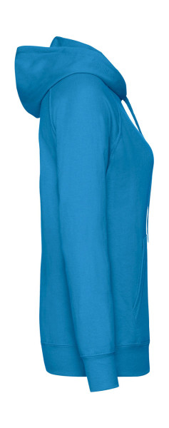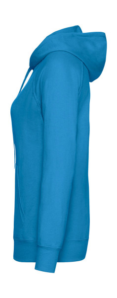 ·240 g/m² ·80% bavlna, 20% polyester ·tenký nečesaný fleece ·kapucňa s plochou šnúrkou v rovnakej farbe ·raglanové rukávy ·klokanie vrecko ·pás a manžety z bavlny/Lycra® s rebrovaním ·tvarované bočné švy, dámsky strih