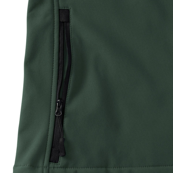 ·340 g/m² ·92% polyester, 8% elastan ·vnútro: 100% polyester mikrofleece ·priedušná ·trojvrstevná textília soft shell ·odolná voči vode a vetru ·spevňujúca páska pri krku ·zips s ochranou na bradu ·manžety so suchým zipsom ·bočné vrecká a náprsné vrecko s vnútornou podšívkou a zapínaním na zips ·zaokrúhlený spodný okraj vzadu ·elastická sťahovacia šnúrka so zátkami pri dolnom okraji ·zaoblený spodný okraj vzadu ·tvarovaný dámsky strih